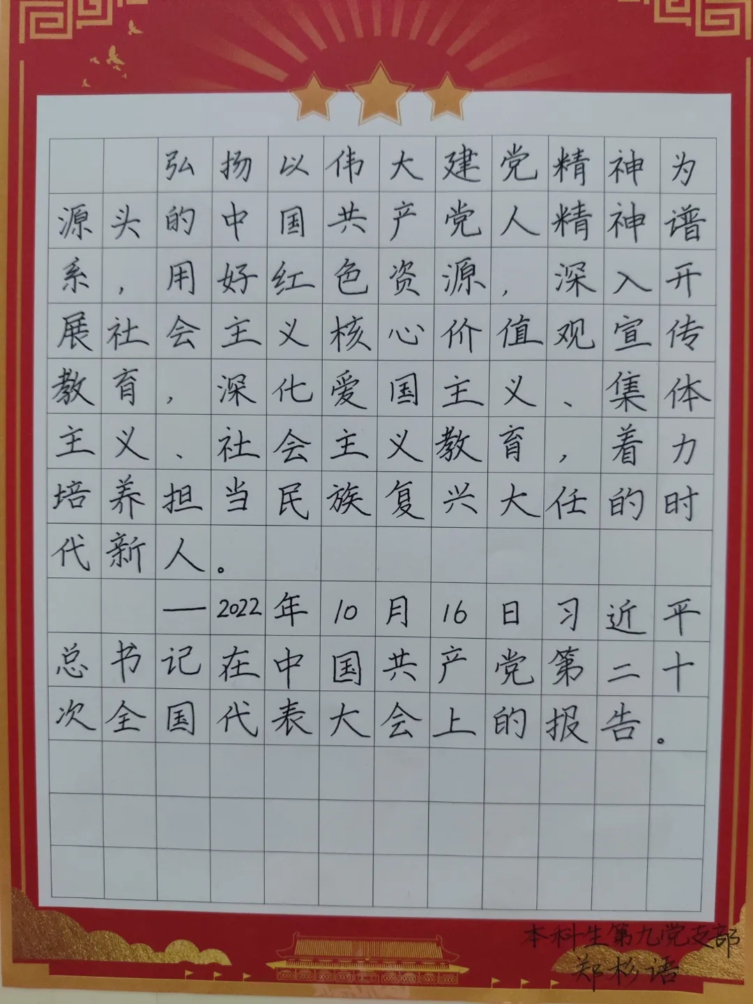 为进一步推动学习贯彻习近平新时代中国特色社会主义思想主题教育走深走实,传承和发扬中国书法文化,在凝神聚气中感悟奋进力量,2023年6月18日晚,由yl9193永利官网党委主办,本科生第二党支部承办的“习语润心 • 人才强国”硬笔书法大赛在锦绣楼T201成功举办,学院各党支部均参与到本次活动中来。